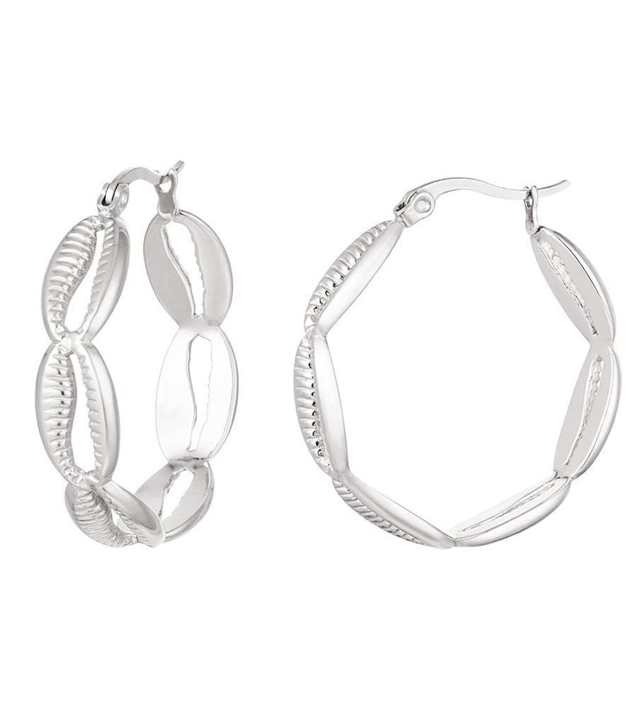 Hoe tof zijn deze zilveren oorbellen met schelpen details! De oorbellen zijn superleuk voor een zomerse look en zijn perfect te combineren met meerdere zilveren kleine ringetjes. Oorbellen schelpenlook zijn gemaakt van Stainless Steel en hebben een afmeting van 3 cm. Deze leuke oorbellen zijn ook verkrijgbaar in het goud!