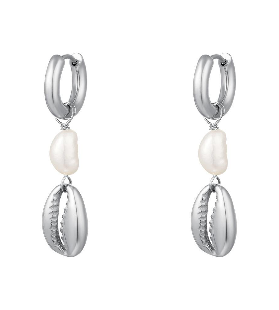 Stainless steel oorbellen met een parel en schelp. De oorbellen zijn gemaakt van stainless steel in de kleur zilver in combinatie met een zoetwaterparel. De lengte van de oorbellen zijn 3,8 cm en ze zijn verkrijgbaar in het goud & zilver! Tip: stijl deze oorbellen met meerdere parelsieraden voor een zomerse look! Ook leuk om deze oorbellen met meerdere sieraden met schelpen details te combineren!